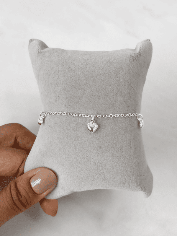 Seja o primeiro a avaliar “Pulseira de Prata Pingentes de Corações”